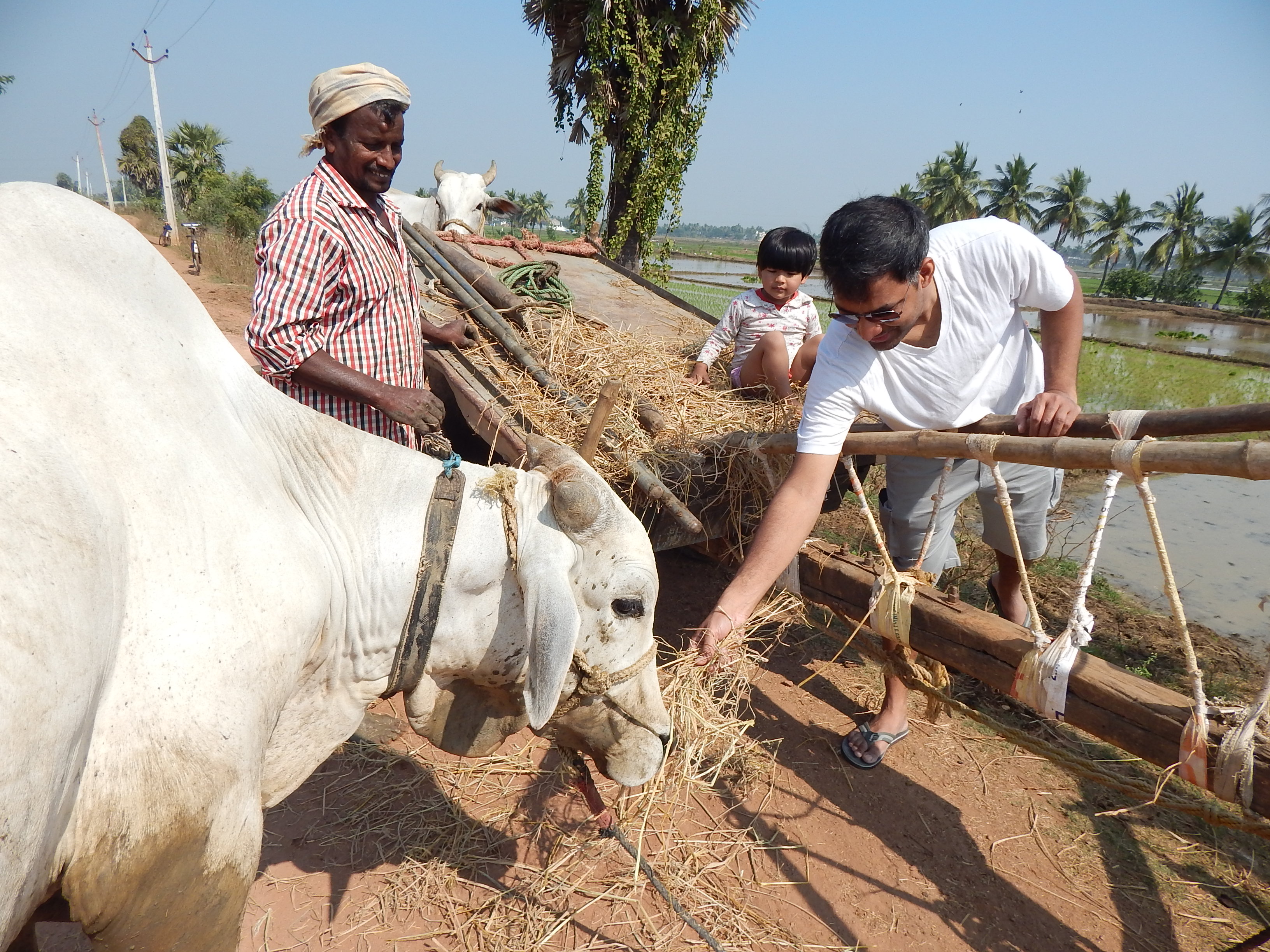 My trip to Kovvali village was like revisiting my childhood and introducing the village life to my young daughter. My childhood memories are infused with the rich tapestry of village life revolving around the farming activities - from tilling the land to transplanting the rice and looking at the caravan of bullock carts bringing home the harvested rice and dry grass.