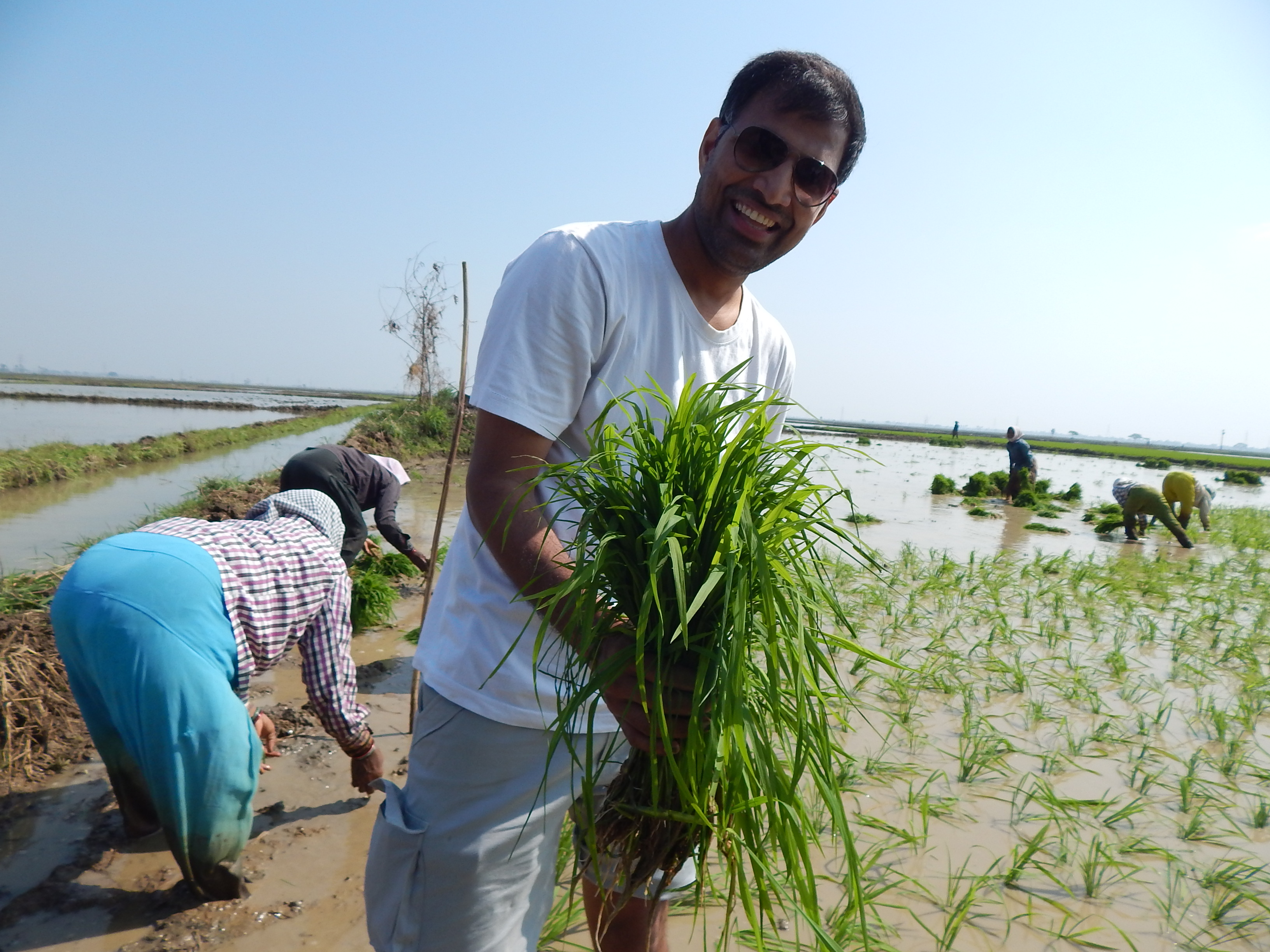 My young daughter had tremendous fun riding the tractor, posing next to the bullocks and most importantly trampling in the wet rice fields where transplantation was apace. She merrily sunk into the knee-deep mud and refused to come out of the field.