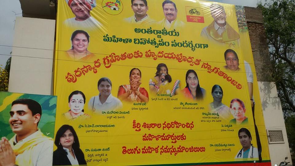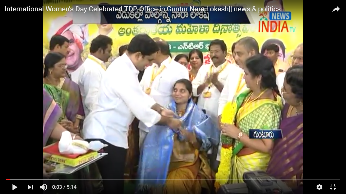 In a event happened at the state party office at Guntur, Shri Nara Lokesh along with Ministers, Mr. Pratthipati Pulla Rao, Mr. Kala Venkat Rao, State TDP Women's wing head, Mrs. Shobha Hymavathi etc felicitated Dr. Manohari who later addressed the gathering.