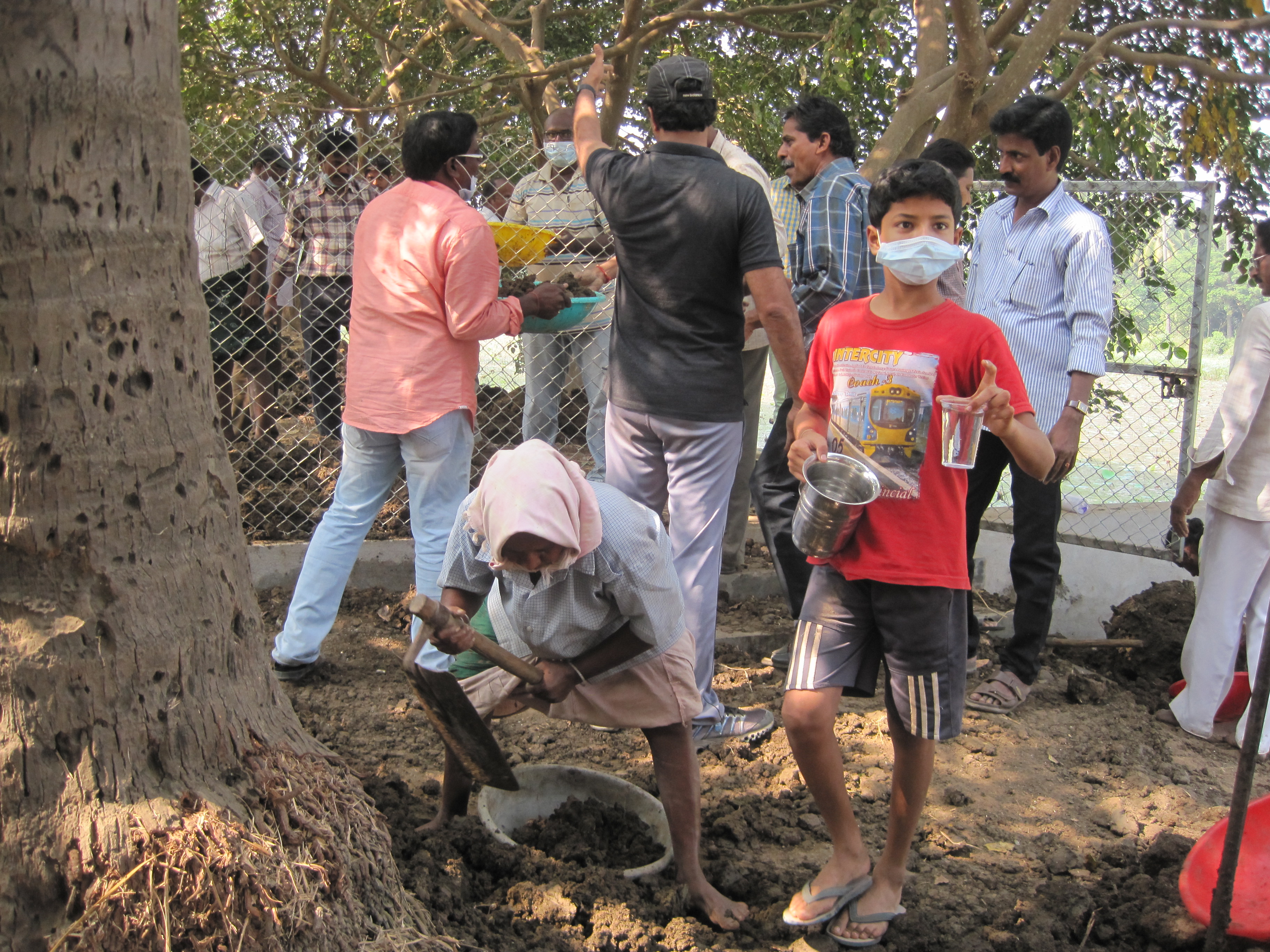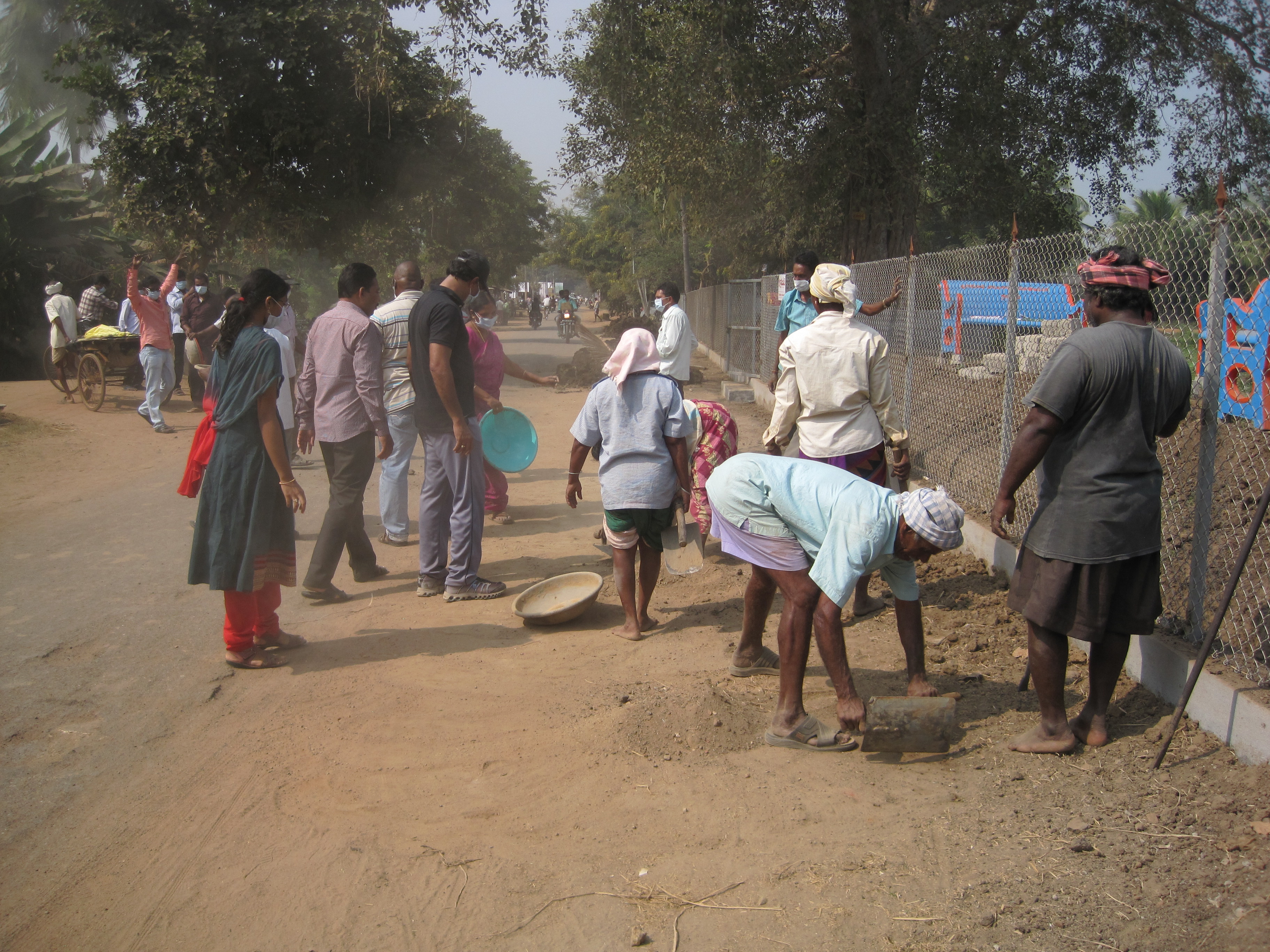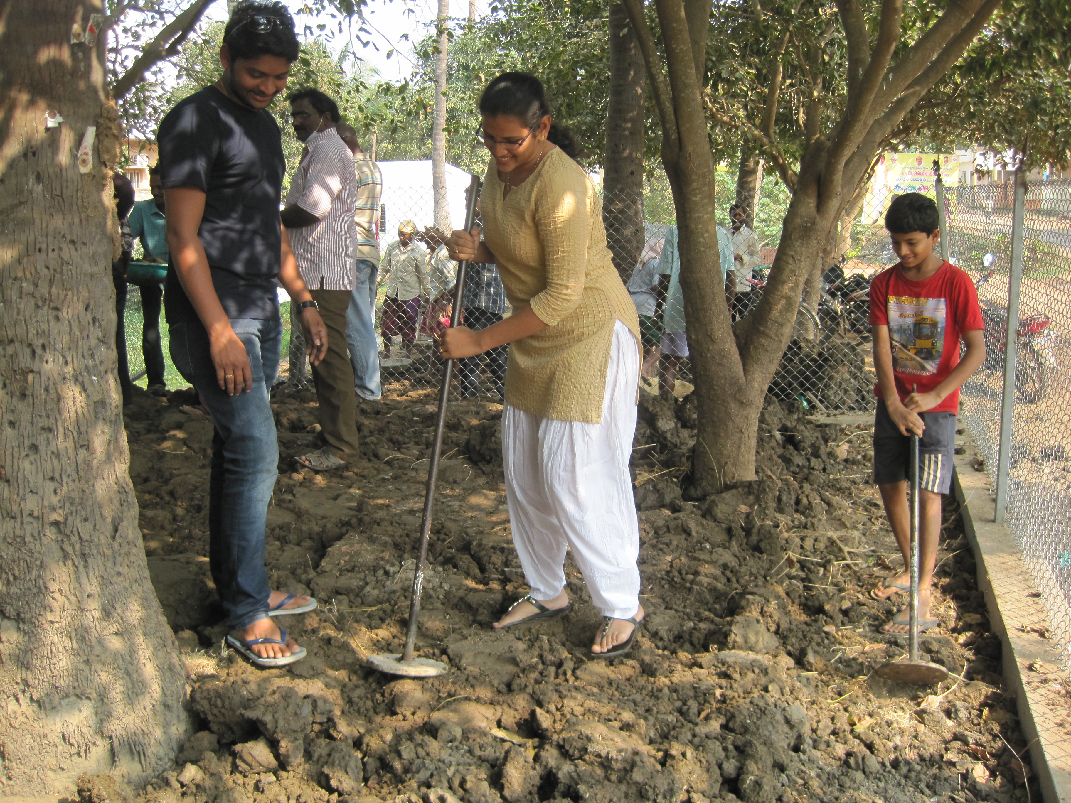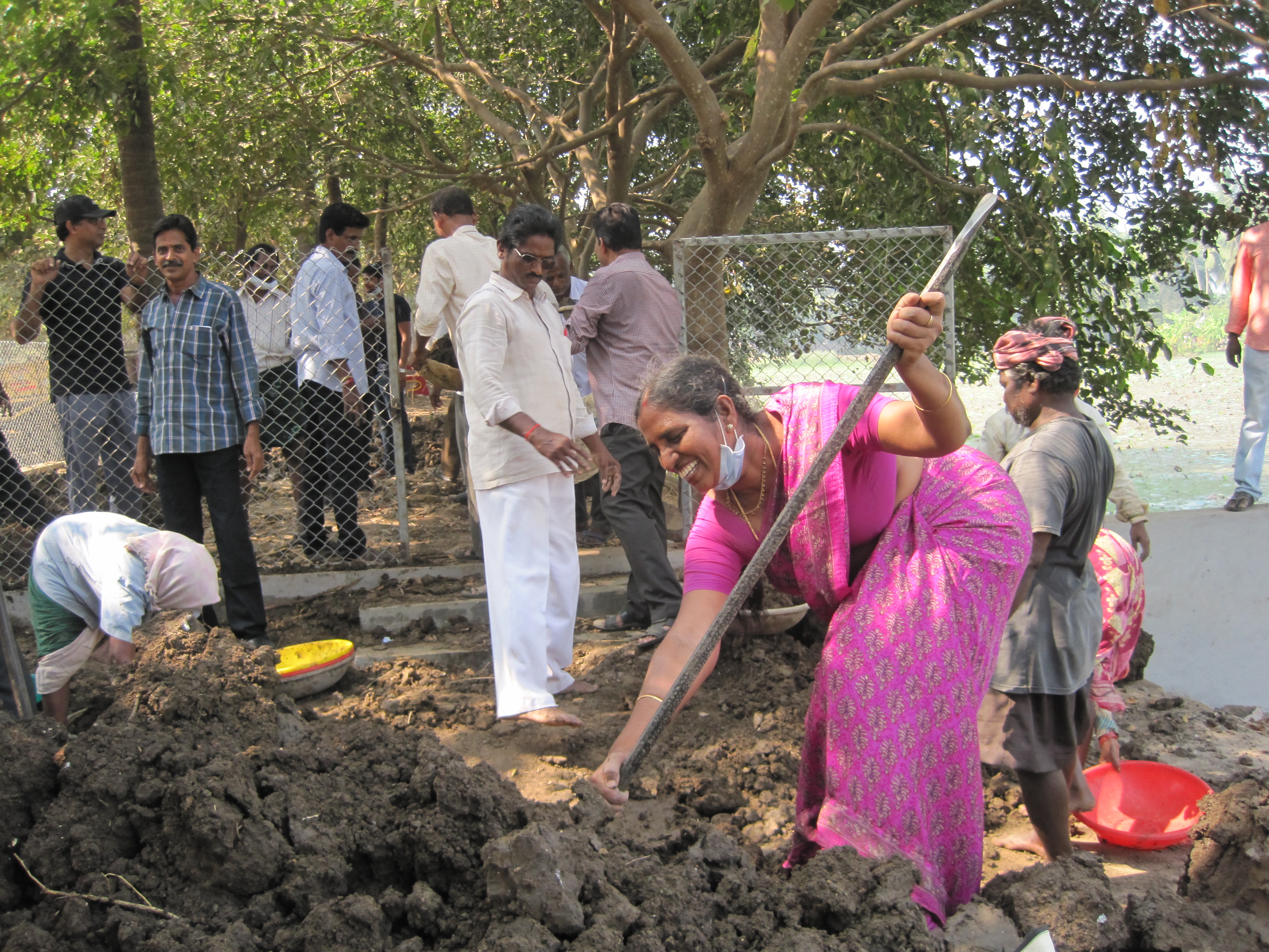 On January 4th, 2016, 1983 batch old students of Kovvali Zilla Parishad High School came forward to do shramadan and partner with Grama Deep for the development of park along the bund of drinking water pond on the main road behind the panchayat office. Few other villagers and young volunteers participated in the shramadan. Mrs. Vani Nandigam and Mr. Manmohan Pothineni of 1983 batch coordinated the event with Grama Deep Dr. Manohari Velamati and successfuly completed the task. 1983 batch students also arranged a lunch for the participants and assured support to future village development activities.