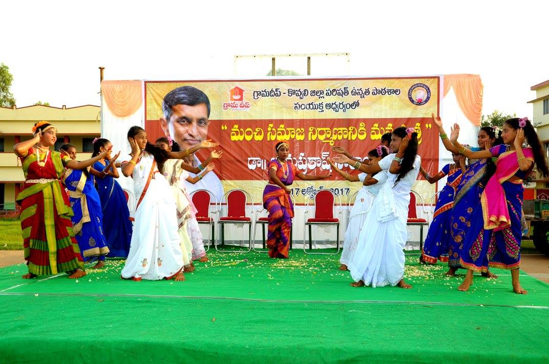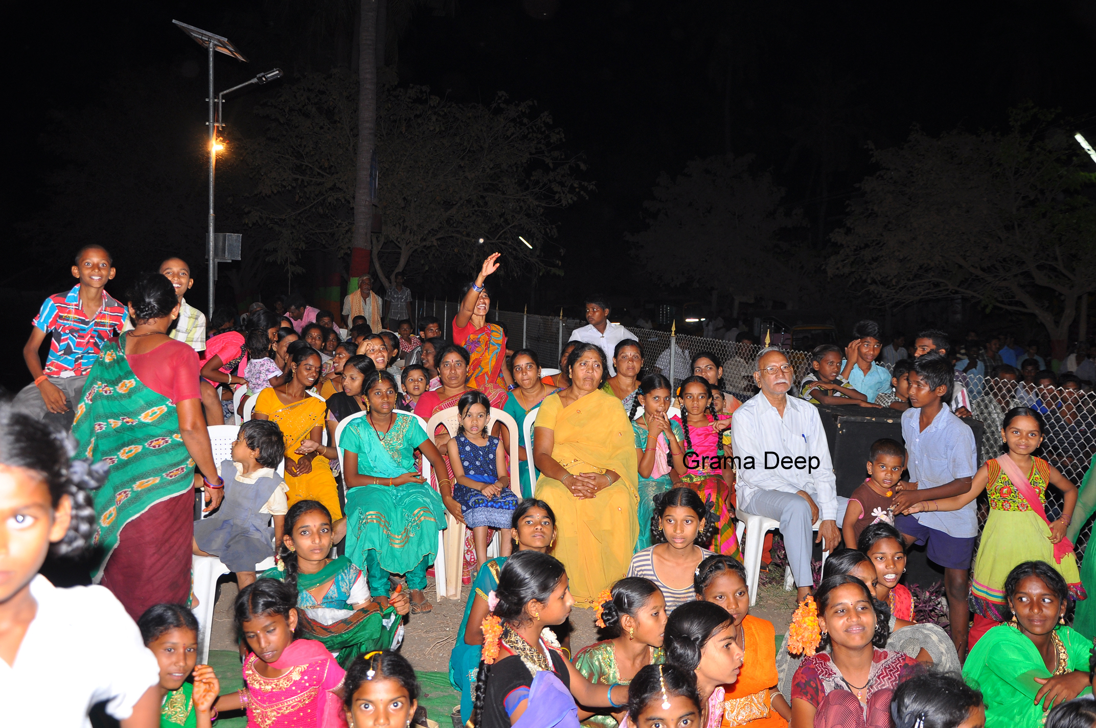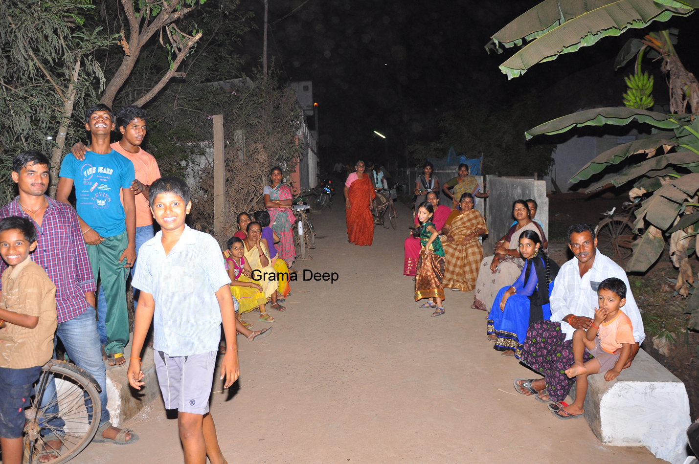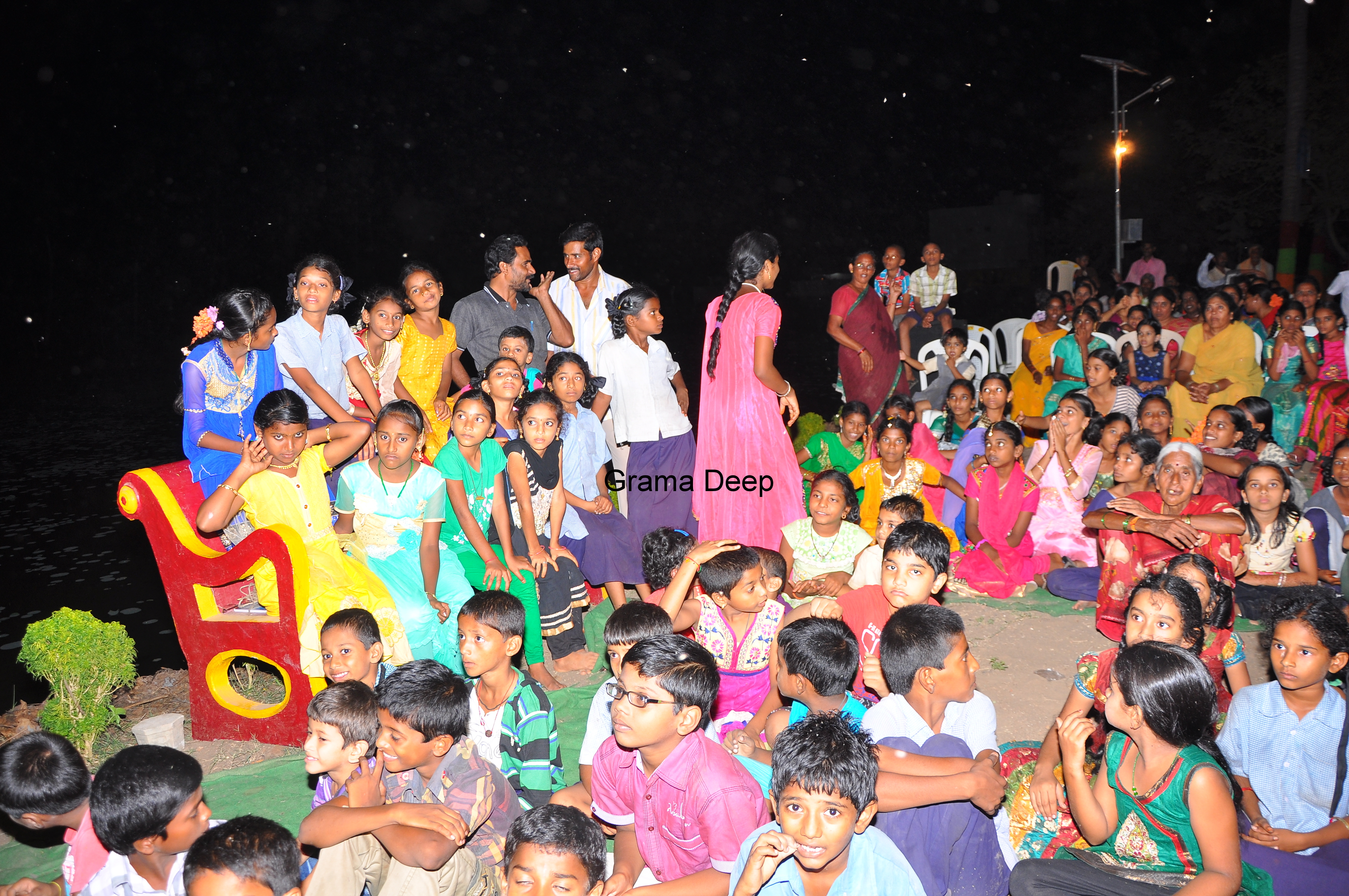 A Cultural Night, organised by Grama Deep, with performances by the Kovvali high school students at Unity Park, sponsored by Mr. Pramod Jampala of the USA in January 2017.. It was a program designed to create awareness on sanitation, wet waste and dry waste segregation and on the upcoming Grama Deep and panchayat partnership door to door collection garbage program. Smt. Vani Nandigam of Mahila Grama Deep, anchored the meeting. Villagers readily gathered and took home the message.