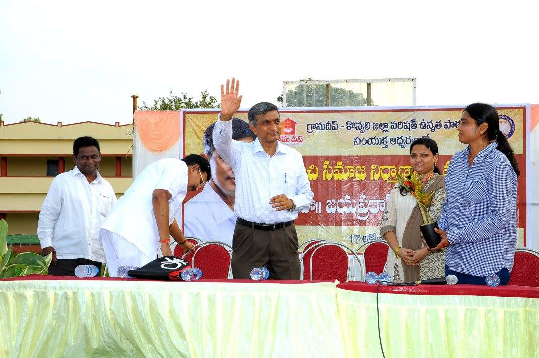 Dr. Jayaprakash Narayan of Lok Satta has visited Kovvali village on 17 October 2017 as the guest of Grama Deep. He inaugurated the park developed by Grama Deep in Kovvali village with the financial assistance of Dr. Usha Balakrishna Rao and gave a lecture on 'Manchi Samaaja Nirmaanaaniki Mana Paathra' to Kovvali Z.P.High School students. Earlier to that, Dr.JP addressed the media and also garlanded the three freedom fighters statues in the village.