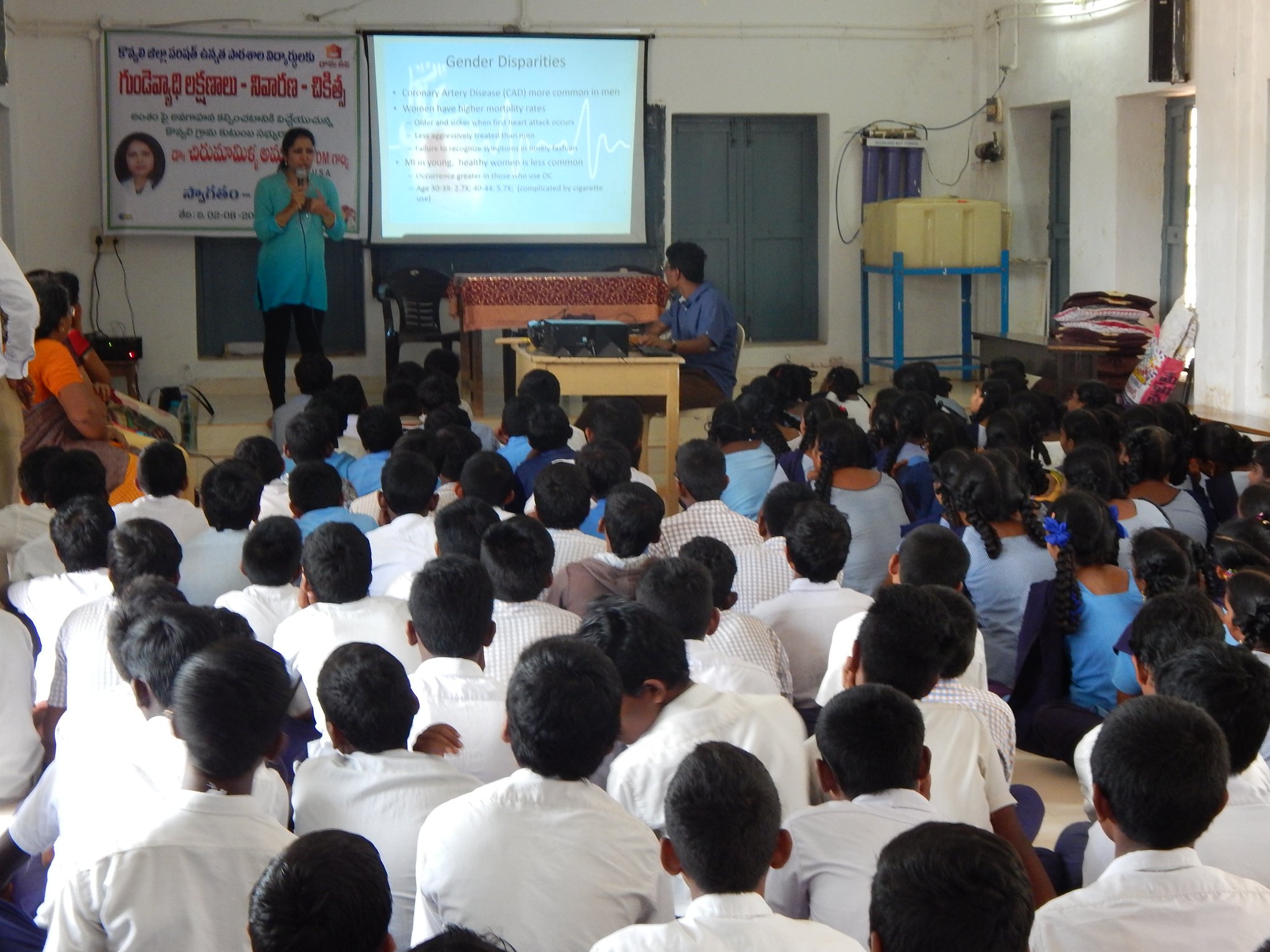 Dr. Amala Chirumamilla, the daughter of Kovvali soil working as cardiologist in New York contacted Grama Deep on her interest to organise awareness and free medical campaigns in Kovvali during her short visit to the village in August 2018. As planned, Grama Deep facilitated an awareness campaign on 'Heart Problems- Prevention & Cure' along with demonstration of Cardio Pulmonary Resuscitation (CPR) method to students of Kovvali Z.P. High School students on 2nd August 2018. On the same evening, more than 100 patients consulted Dr. Amala in the free medical camp organised at Kovvali Vikas Kendra. Dr. Amala also contributed towards six plants in her family members' names in the village and took part in plantation program. Women members of Mahila Grama Deep appreciated and felicitated Dr. Amala on her professional achievements and for rendering her service to the village.