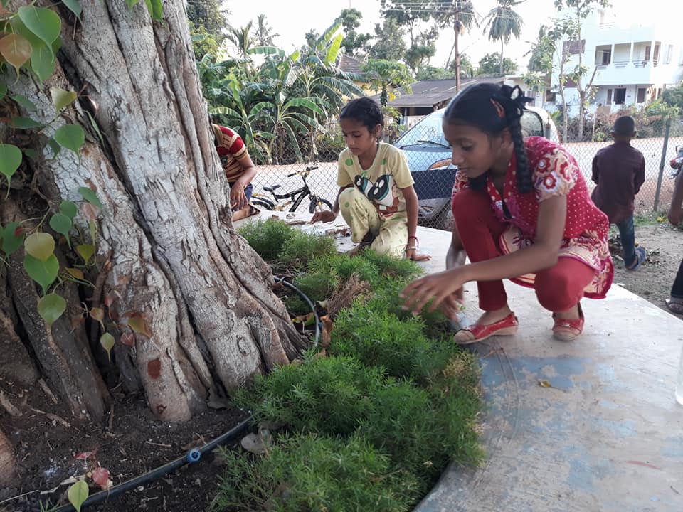 Cleaning up the Parks in the village and watering the plants is fun for the Bala Grama Deep Child Volunteers' team. It helps them interact, socialise, develop team spirit and leave with a contentment of serving the community. It helps them nurture as responsible citizens with a respect to the environment they are living it. Jaya ho Bala GramaDeep.