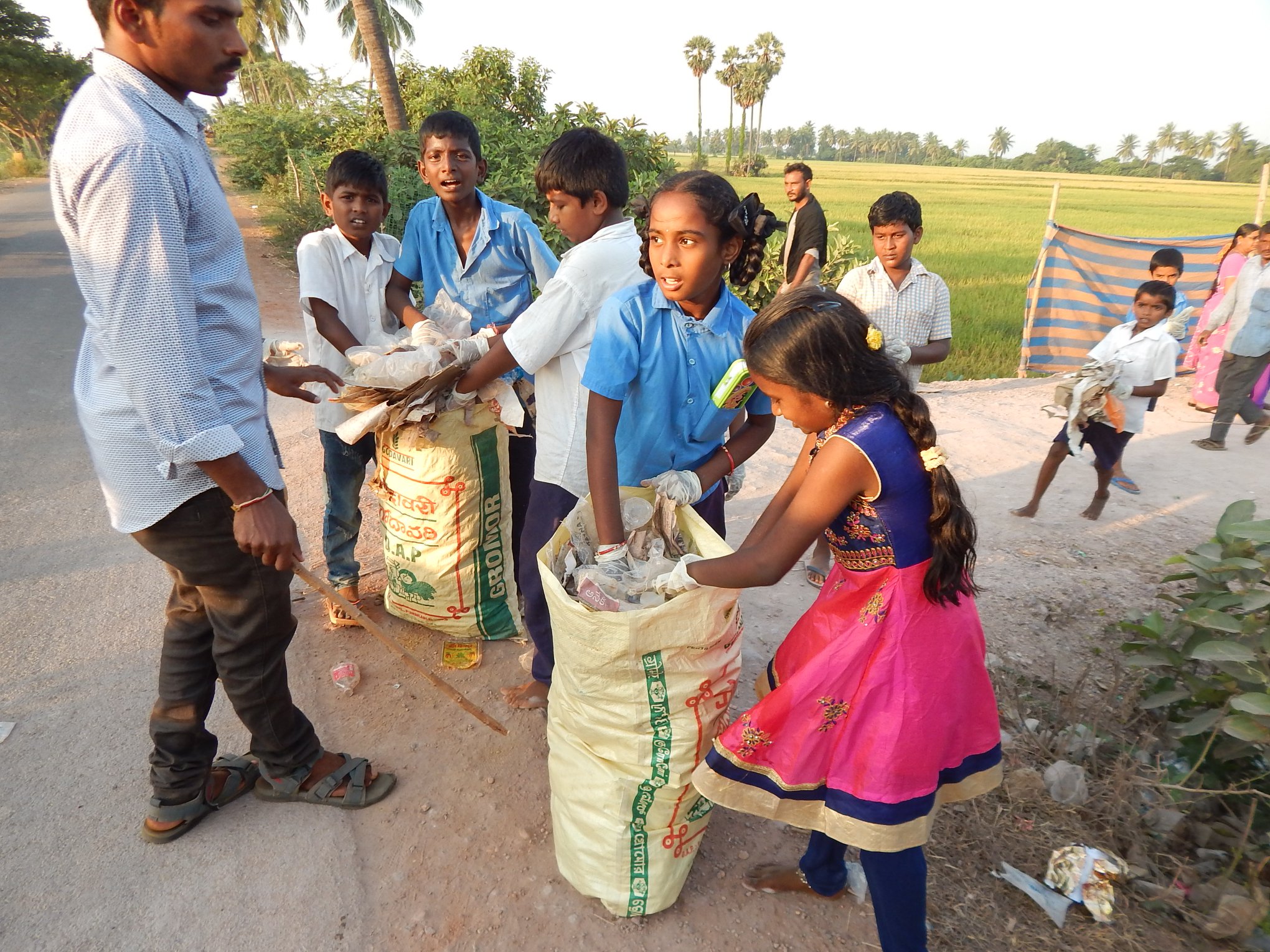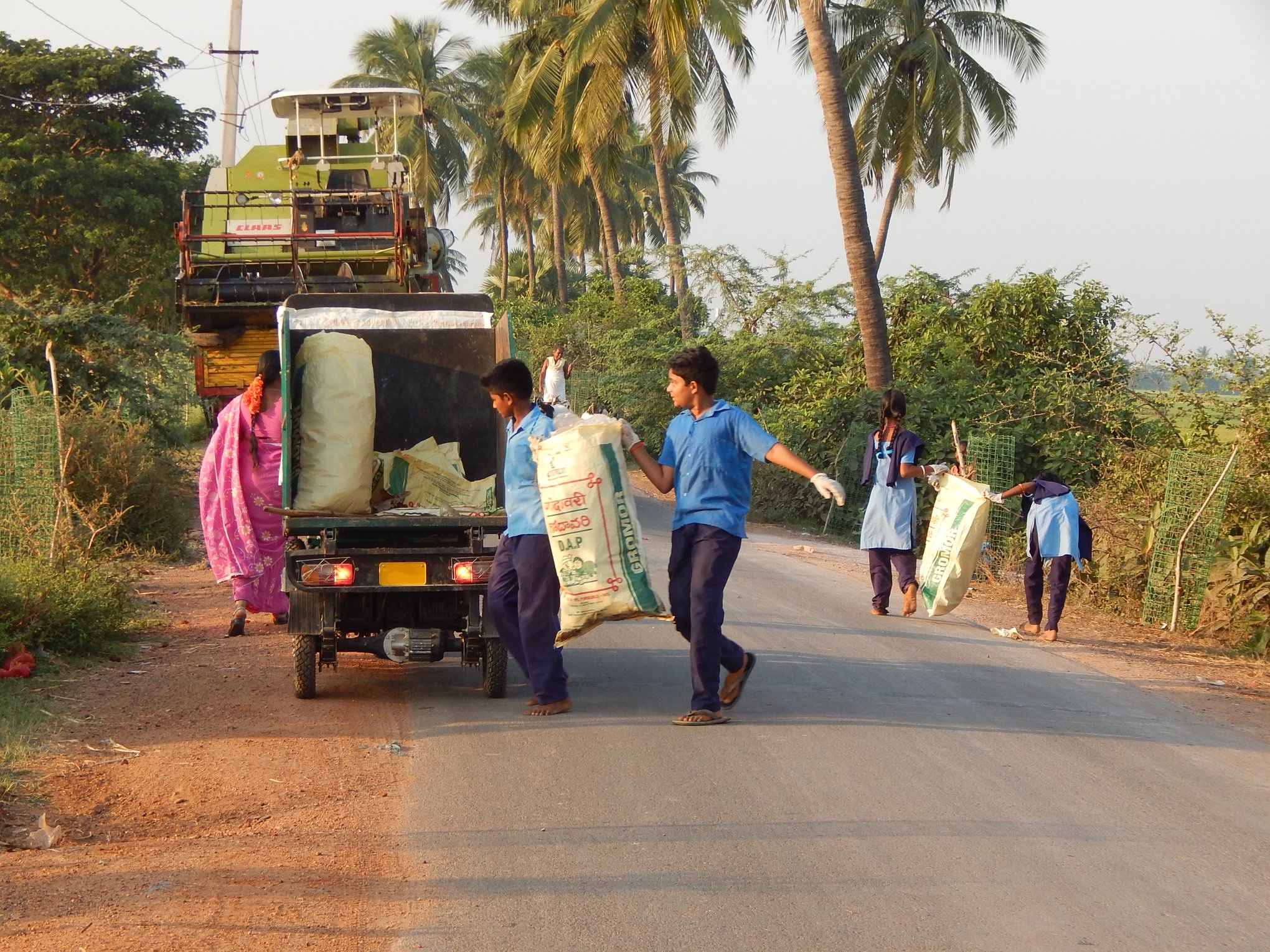 In an attempt to make Kovvali village environment friendly, our enthusiastic child volunteers have been actively participating in picking the recyclable plastic waste like empty bottles, glasses and water packets from the streets and during various other occasions in the village. Children who collected the most have been rewarded with gifts and titles. Gramadeep made arrangements for the segregated waste to be sent for recycling.